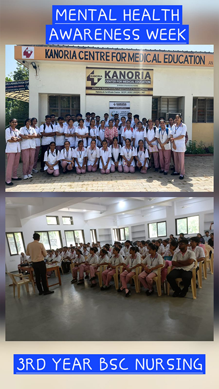 Kanoria Centre for Medical Education Celebrated MENTAL HEALTH AWARENESS WEEK.On the date of 11 Oct 2025 3RD Year Bsc Nursing and 2ND Year GNM attended seminar,drama, exhibition on Mental Health Awareness Week. They learn about Mental illnesses and how to manage suicidal situation.