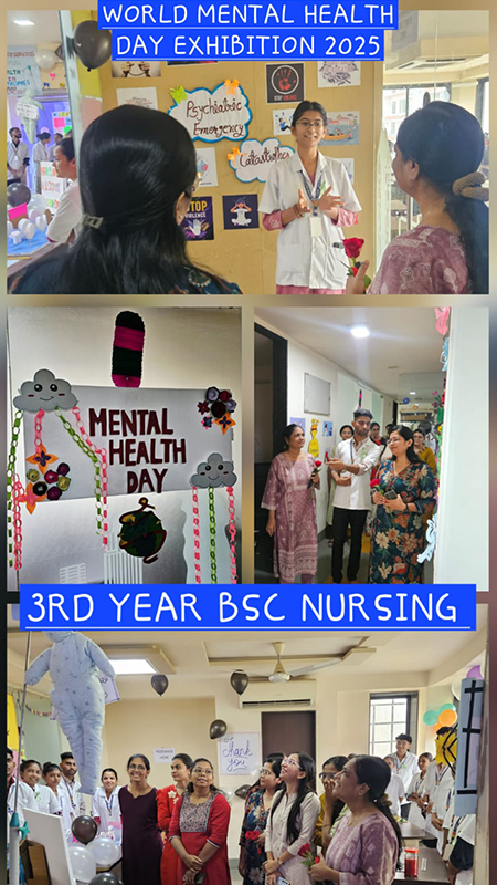 This Year Theme of MENTAL HEALTH DAY was ACCESS TO SERVICES – MENTAL HEALTH IN CATASTROPHES AND EMERGENCIES.We Celebrated World Mental health day on 10 Oct. The class 3rd Year Bsc Nursing Organised Exhibition which Consists various Mental disorders.